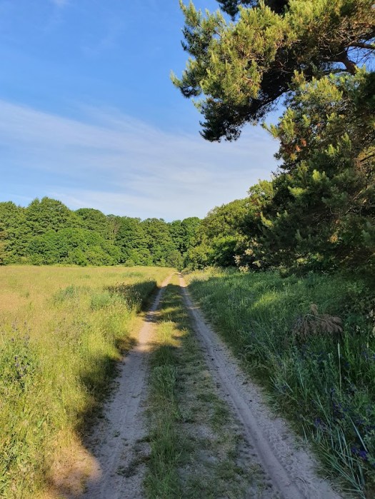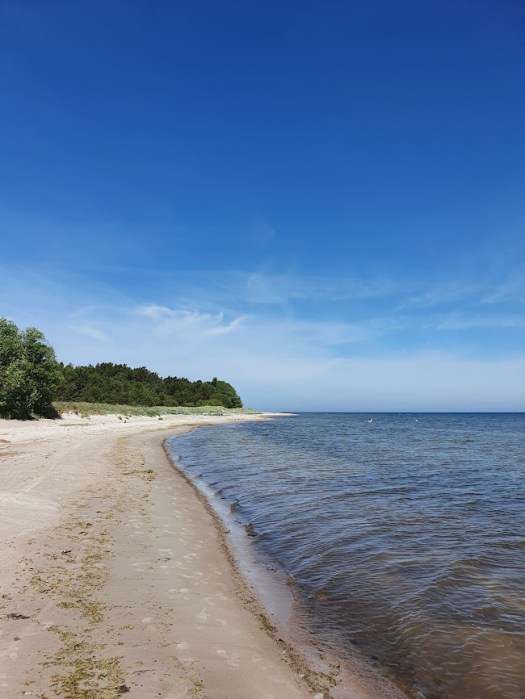 Hela baltkusten är full av sand, milslånga sandstränder så långt ögat kan nå. Även Runö är en sandig ö, så till den grad att cykelturen på den lilla skogsvägen inte går fullt så fort som jag tänkt mig. Hjulen hugger emellanåt fast i det sandiga underlaget. På ett ställe ser jag ingen annan utväg än att gå av och leda cykeln en bit. Vid vägens slut möts jag av rejäla sanddyner. Fötterna sjunker ner som i nysnö, innan jag når upp till en punkt varifrån jag ser hela den fantastiska stranden öppna upp sig. Jag ser fram emot ett morgondopp direkt efter frukost. Men nu är det bråttom till fyren.