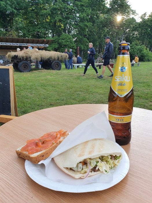 Jag kommer fram precis när restaurangen ska öppna, och möts av Karil som verkar glad att till första gäst få någon som han har lärt känna lite. Snabbt serveras jag en läcker fisksoppa, som påminner om finsk, mustig laxsoppa, med potatis och morötter. Jag klunkar också i mig en lokalbryggd Ruhnu Hüljes och hinner njuta en kort stund av utsikten och stillheten, innan det är dags att skynda tillbaka till byn, och konserten i kyrkan.
